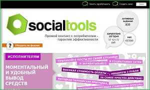 SocialTools — сайт для заработка в социальных сетях ВКонтакте, Twitter, FaceBook, G+, Youtube, Одноклассники, Мой мир, LiveJournal, LiveInternet, Instagram. Цены выше средних, но заказов маловато. При достижения порога в 15 рублей, можно заказать выплату на вебмани, баланс мобильно или на яндекс деньги.